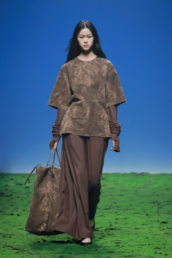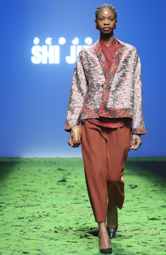 如今对于文化符号的再创,已不似从前直接将原有的元素置于载体当中使用,而是有了更多的造诣与化用。对于文化遗产进行传承与保护就是要去使用它,与当下生活结合,这也有利于增强大众的文化自信以及文化认同感。SHIJIE诗简一直致力于在保护传承中创新中国传统文化遗产。品牌“自然之子”系列服装,在极具现代感的廓形下,巧妙地融合了宋锦、云锦等非遗面料。在保留东方庄严感服装氛围的同时,也中和了传统服饰的繁复及厚重感,更符合现代的穿衣风格,也让传统工艺面料有了新的面貌,并逐步完成与现代生活场景相融合的演化。