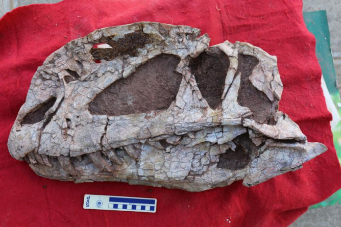 2015年发现的三叠中国龙完整头骨化石(禄丰市恐龙化石保护研究中心供图)