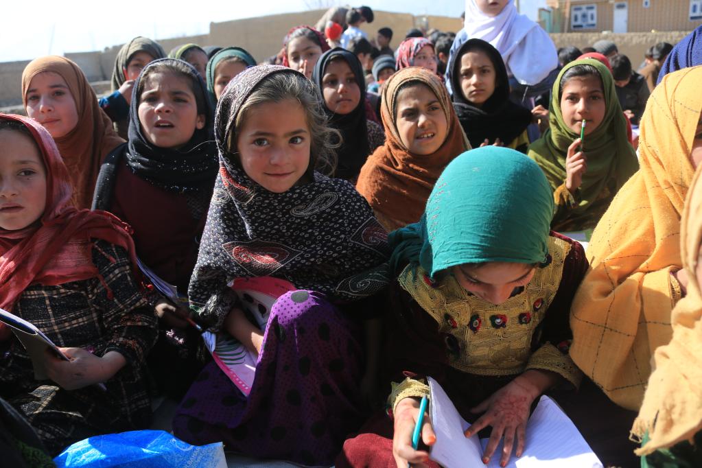 2023年2月23日,在阿富汗喀布尔,儿童们在一名年轻教师的免费课堂上听课。新华社发(塞夫拉赫曼·萨菲摄)