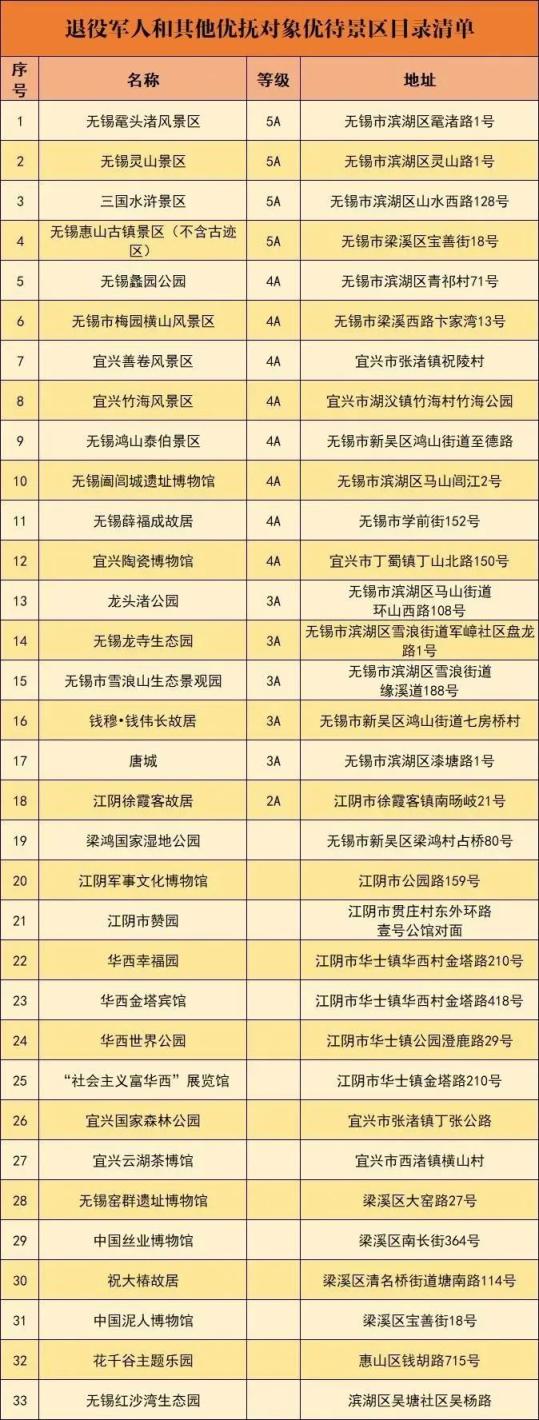 具体优待景区目录如下↓