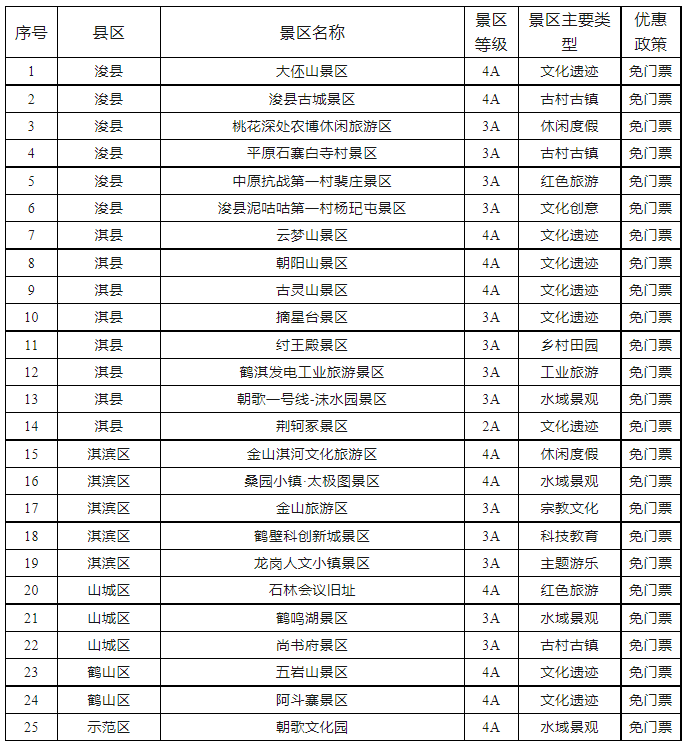 文旅优待项目清单