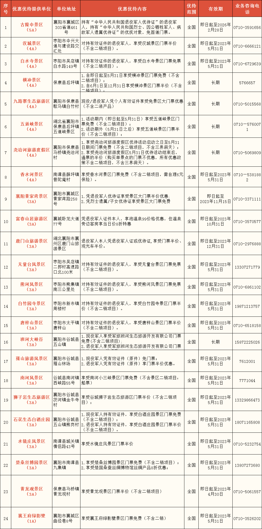 ↑识别二维码查看湖北151家景区优待项目清单