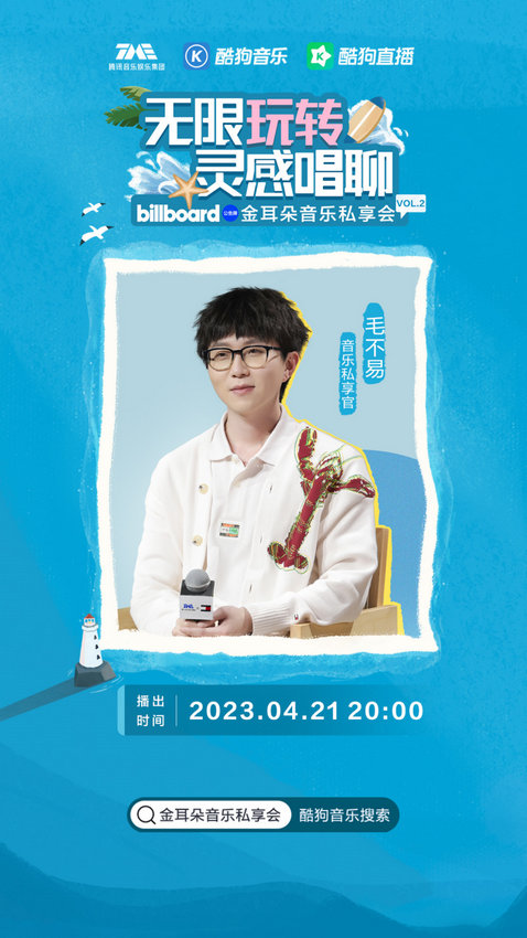 热爱可抵岁月漫长,音乐可暖春日时光。近日,酷狗音乐官宣即将上线“Billboard 金耳朵音乐私享会”直播节目,并邀请前沿音乐人毛不易前来做客,分享他的创作之路。本场节目由腾讯音乐娱乐集团、Billboard公告牌携手推出,将在4月21日(本周五)晚八点上线。