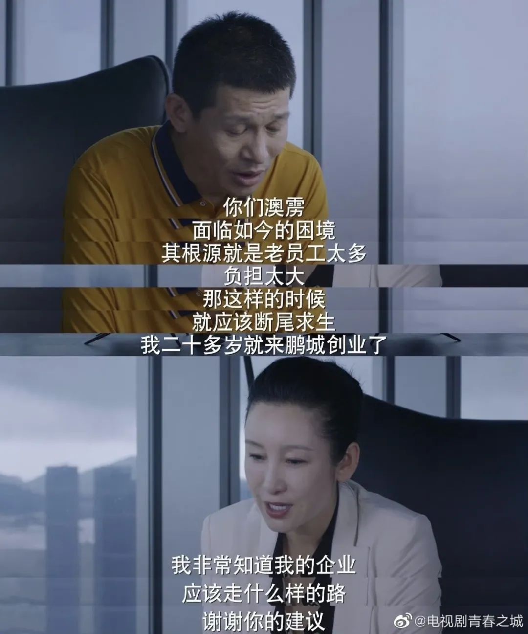 而随着故事的发展,澳雳成功转型,夏末想要扩大研发规模,但此时的吴董从革新派变成了保守派,展现出维稳的心理诉求。这种人物观念的转变在蒋楠楠、崔江北夫妻二人身上体现的更为明显。
