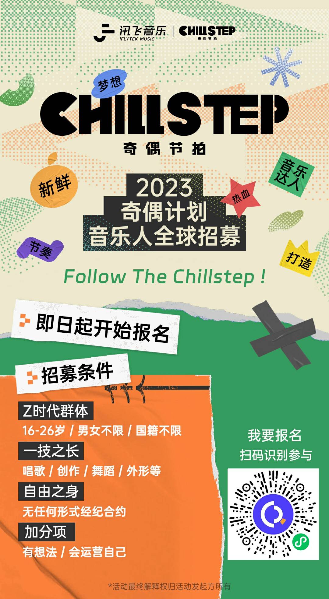 在本轮面试现场,我们感受到了选手们在创作和演唱上的独特魅力,也看到了选手们对音乐的一腔热血,更看到了选手们追逐梦想的努力模样!目前Chillstep2023“奇偶计划”音乐人全球招募活动报名仍在进行中,欢迎心怀梦想,具有实力和才华的音乐人前来报名参加!期待更多音乐新声力量加入Chillstep这个大家庭,和讯飞音乐一起开启一段充满挑战和机遇的音乐之旅!