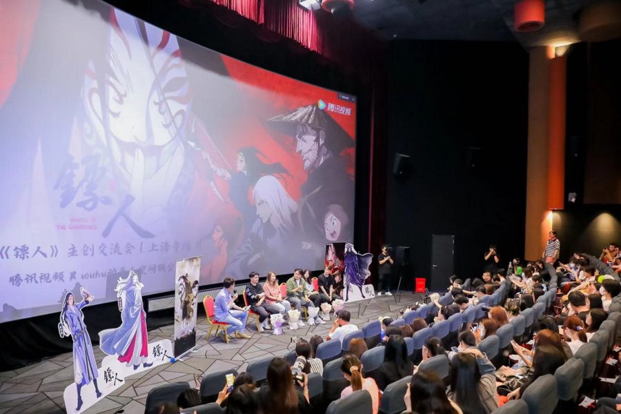 《镖人》动画讲述了隋末时期,一个身手不凡,名为“刀马”的镖客行走于西域大漠,与各路豪杰、商人、刺客结下了各种恩怨情仇的故事。活动观影现场,获得了观众及业内嘉宾的一致好评,“打戏出彩”、“耳目一新”、“动作张力把握得很好”、“声音贴人,音效代入感强”……不少观众映后在社交媒体进行了这样的点评,很多人都被这个有血有肉的、符合幻想的武侠世界点燃,充当“自来水”,他们纷纷表示这是一场难以忘怀的观影体验,硬核的武戏呈现令人着迷。