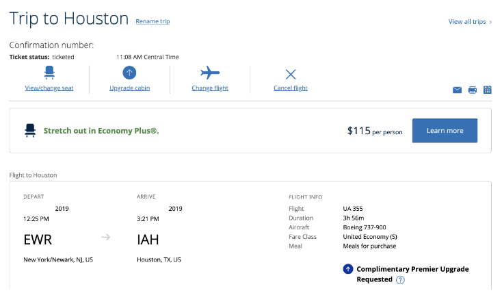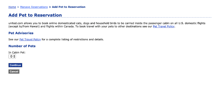 United可以在线添加宠物票,这一点不错,对比之下Delta就一定要打电话操作添加宠物票。首先买好票之后往下拉。