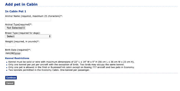 然后就可以添加信息了,首先是同行宠物数量,通常一架飞机允许携带的宠物有限,所以先到先得(但我感觉宠物book满的概率挺小的)。