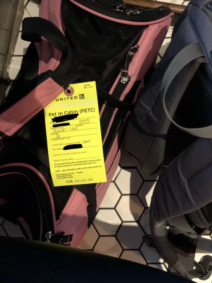 这种方法要收取额外费用(小提示:宠物票是符合Amex报销规则的开销!),同时要求宠物的笼子(航空业内学名叫“kennel”)能够放置在前排座位下。因此带宠物进入客舱对于笼子的大小有所限制,这也意味着不能选择安全出口以及第一排的位置。具体笼子大小限制请参考航空公司的相关页面。要注意的是不同的机型、不同舱位可能不一样!最稳妥的方法是打电话给航空公司客服。