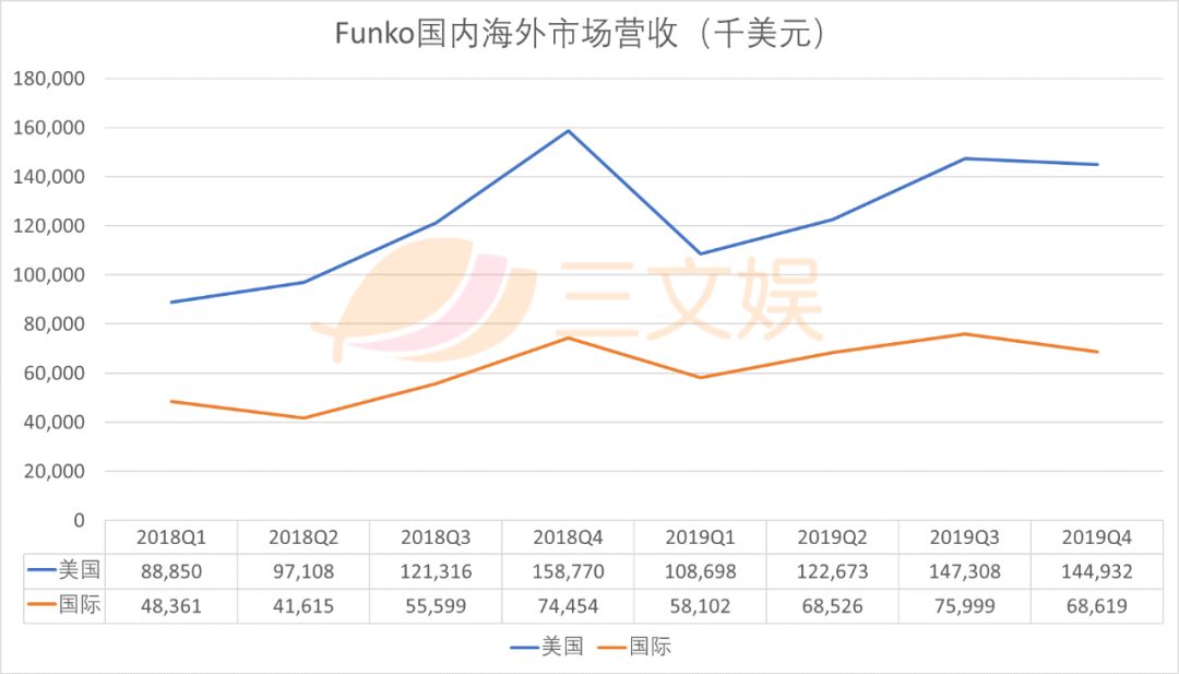 根据Funko 2019年的财报,Funko在海外市场的收入为2.71亿美元,同比增长23.3%,这个速度要远远大于国内市场。