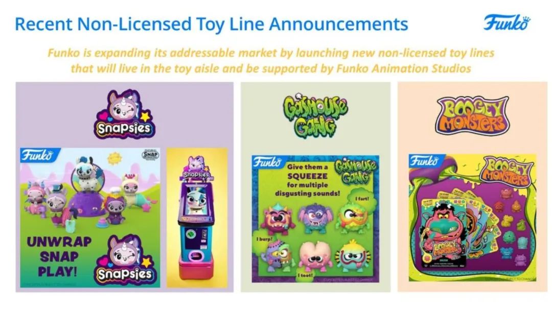 最后一点,它是非授权产品,是Funko自己的IP。Andrew Perlmutter 表示扭蛋机会播放Snapsies的动画短片吸引小朋友,而动画短片的制作方是Funko自己的动画工作室Funko animation studios。
