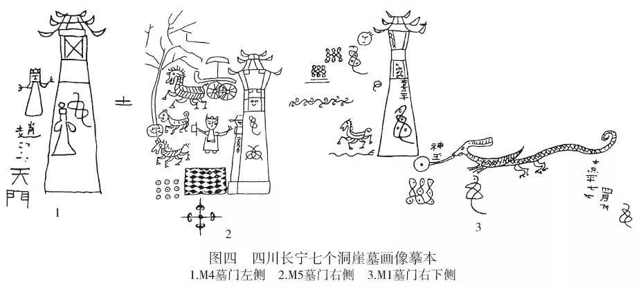 第三,有学者认为长宁七个洞崖墓“赵氏天门”题刻里的天门为赵氏私有,并进一步将所有天门题刻解释为“修辞上用的雅称”,并非为登天的天门,而为墓主在地下的阴宅之门。但“赵氏天门”的题刻目前尚属孤例,没有可资比较的资料,意义不能完全明确。不过该处阙体图像上及其旁边还有不少特殊的符号,并有飞龙出现,恐怕不宜理解为一般的阴宅之门。而其他题刻为天门的图像上,有的紧邻天界事物,如天仓,从汉画像中较常见的“上食天仓”一语来看,显然不能将这里的天仓理解为墓主阴宅之物,而应为天上之物,与之相邻的天门显然也应为天上之门。有的图像上面出现西王母,西王母也并非地下阴界之神,而为能登天的昆仑山上之神(天门正在昆仑之上,后详)。可见,这些天门图像还是应该看作天界之门更为妥当。汉墓图像的一个重要作用就是装饰美化墓室,有不少内容是从生前居室或其他社会上流行的装饰图像等借用过来,与墓葬本身的关系未必紧密,不必求之过深。但另一个重要作用也在于表达对死后的美好愿望,主要是安全、排场、享乐、升仙、子孙昌盛等,虽然也不只是与墓葬相关(上述也是生前积极追求的愿望),但在墓葬中更为集中和流行,能反映丧葬思想和信仰。从性质、组合和突出程度等来看,天门图像无疑属于后者。