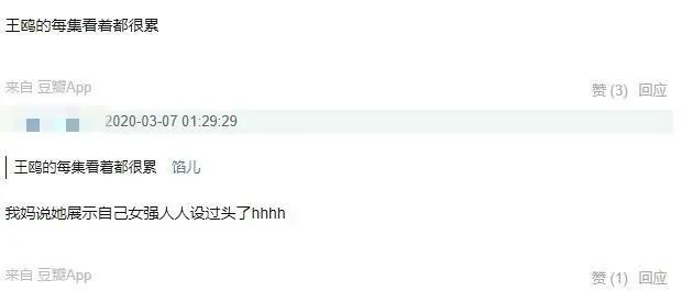 这就引发部分网友反感了,直言真的不想看王鸥的环节,每次王鸥到一半,画风都拐向煽情卖惨,这是要洗白自己?夜光剧本的事已然是笔糊涂账了。还有网友觉得王鸥女强人人设立过头,看着好累好假。