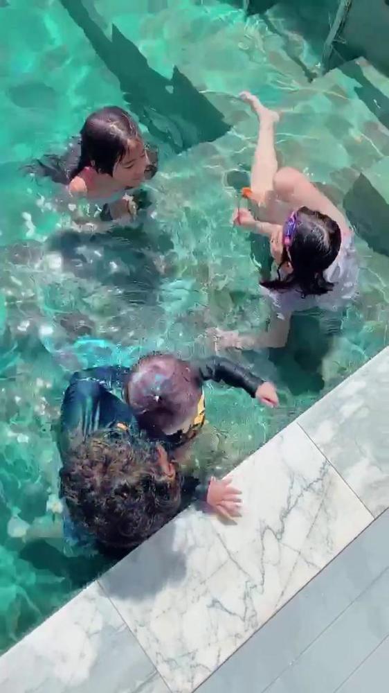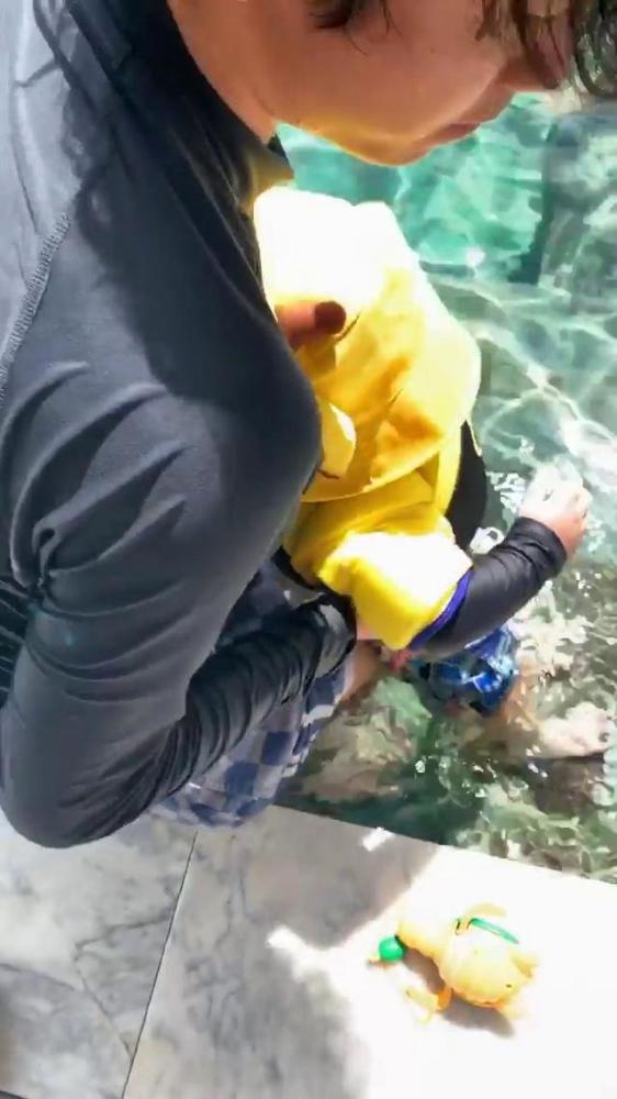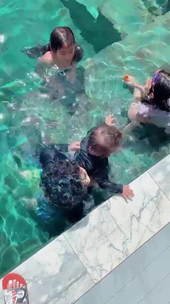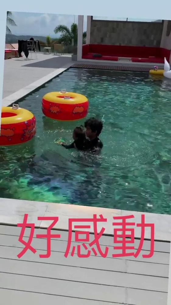 张柏芝拍下这一幕,留言“好感动”,然后再分享Lucas抱着Marcus在水中嬉戏的画面,表示“当妈妈看到这画面真的很足够。”