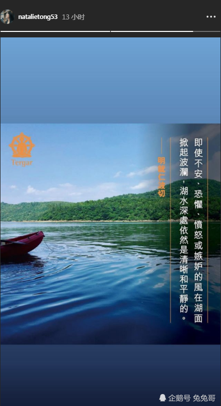 虽说唐诗咏这一状态看起来似乎是在与网友分享,然而却巧合的发生在被造谣“遭马国明搞大肚子”一事之后,也就难免让人觉得她面对此事时是“愤怒、不开心、委屈”的状态呀,同时唐诗咏所说的“修心,好好的过程”,也是不难让人觉得她把这次事情当做是一个修心的过程呢。