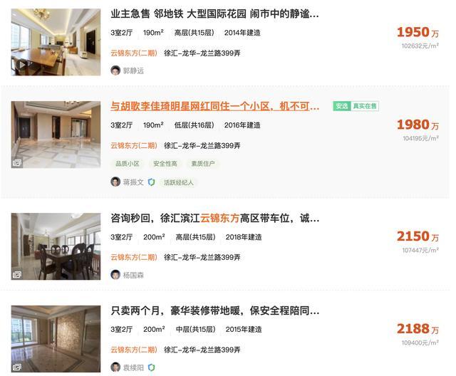 AI财经社在安居客平台看到,云锦东方二期的新房已售罄,二手房的价格在1950万元至11000万元不等。