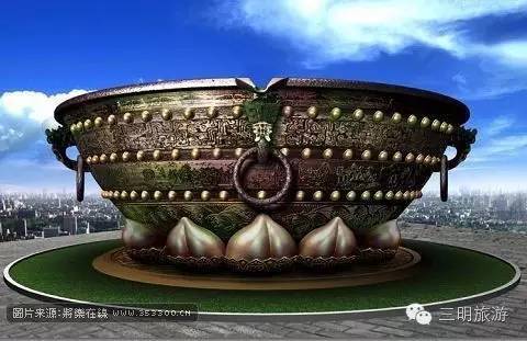 在三明,有个被授予“大世界基尼斯之最”荣誉称号的擂茶钵,叫将乐擂钵铜雕。