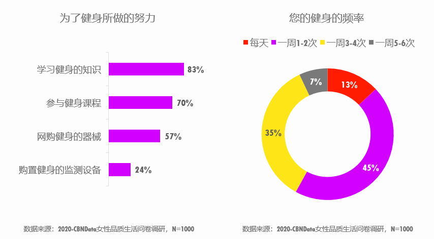在饮食消费上,代餐食品成为新“食”尚。CBNData《报告》显示,26%的女性至少每天一次代餐,超10%的女性一年花费在减肥(健身)上超过2000元。