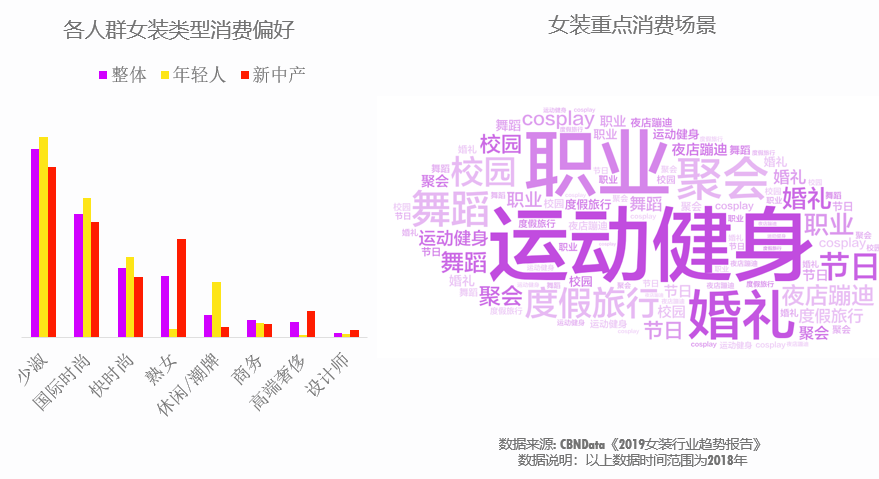 除此之外,女性的穿衣风格也呈现个性、多元化发展,美丽和帅气不再对立,休闲、商务、设计师风格成为年轻女性的偏好,新中产则在衣橱里增添了潮流尖货与高奢品牌。