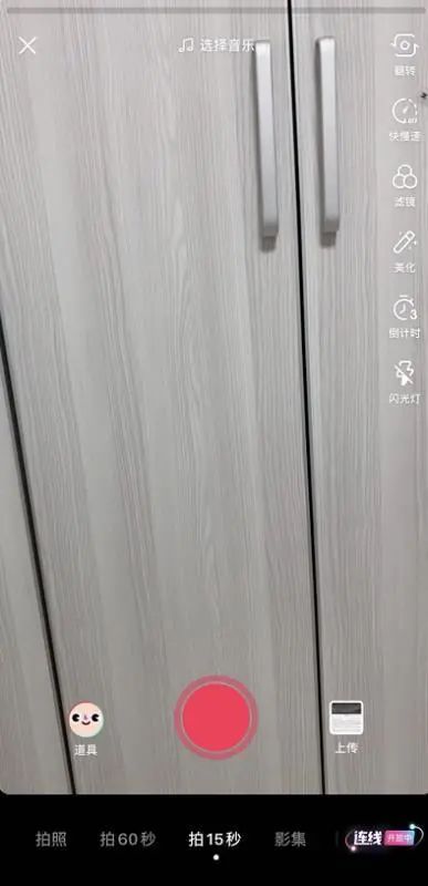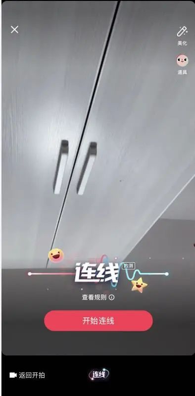 连线功能目前只对部分用户每日限时开放。连线的入口在抖音内容发布页右下角,原本“开直播”功能的位置。在用户授予摄像头权限的情况下,点击后会开启前置摄像头进行视频连线。