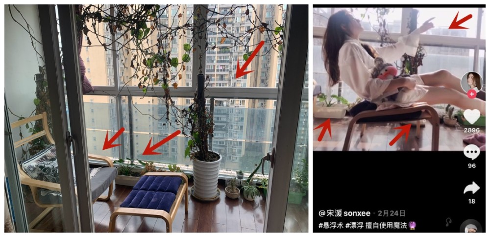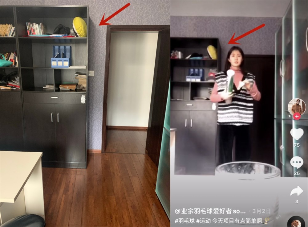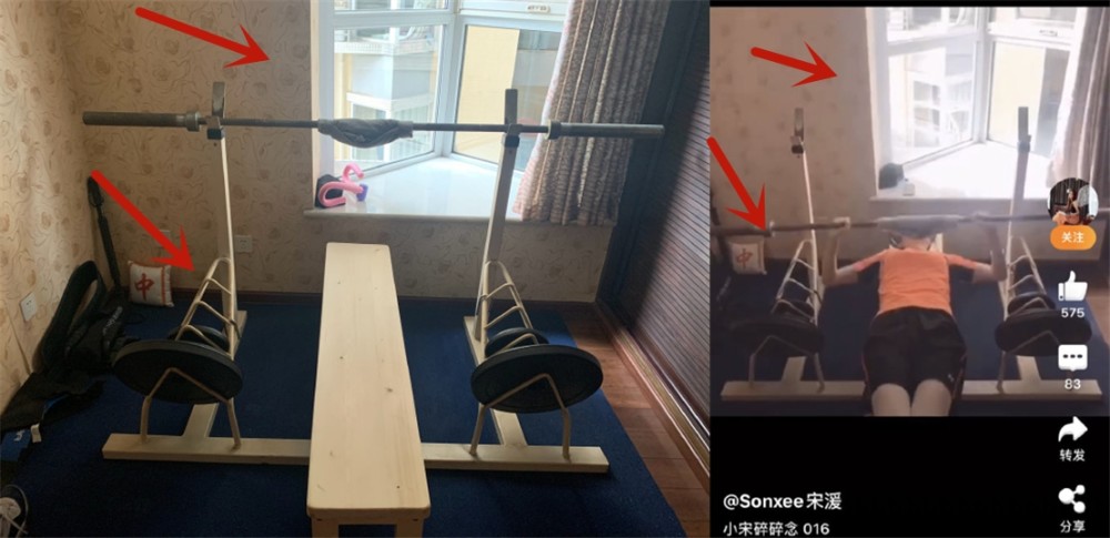 从照片中可以看出,博主晒出的男方家中照片和宋湲在短视频平台中晒出视频的背景是一模一样的。