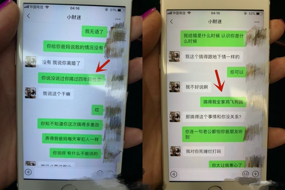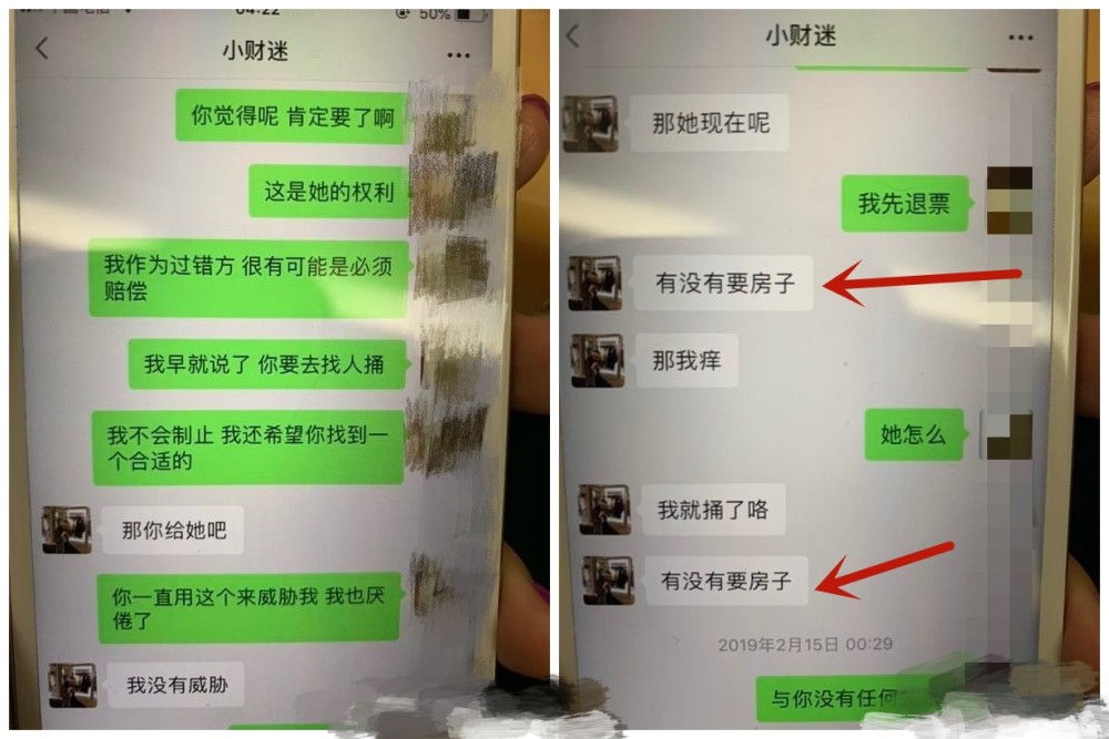 在聊天记录中对方询问男方离婚的财产分配情况,一直追问有没有要房子,男方在聊天中还指责对方把他家搞的鸡飞狗跳,还称对方曾是同性恋也没有和他说过。
