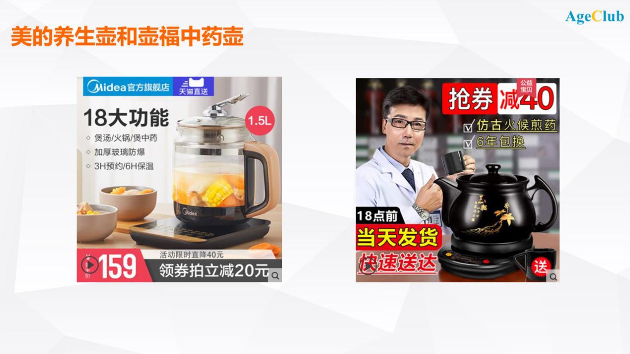 目前国内老年家电主要关注的是老年人的养生健康需求,代表产品是脱糖电饭煲和中药壶。