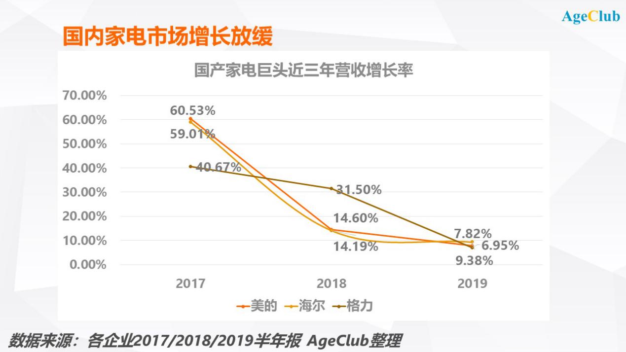 家电巨头营收增长集体放缓,预示着行业发展触及天花板。经过多年高速增长的发展,中国的家电产业发展的竞争格局早已经成熟,产业发展更加趋向存量竞争时代。