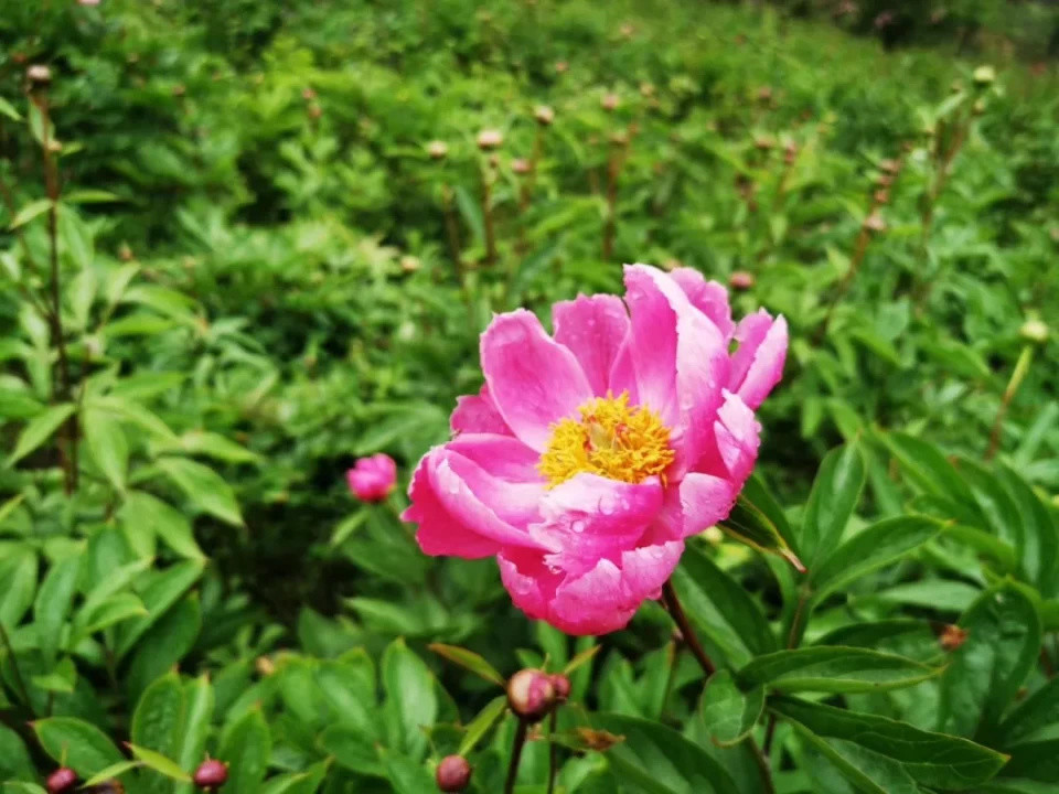 在这里,100多亩的芍药竞相开放,朵朵粉红摇曳风中,煞是好看。