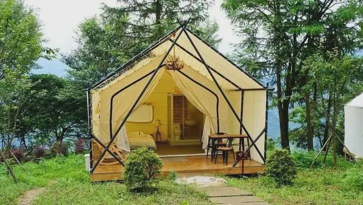 这里有房车、帐篷、小木屋多种营地任你选择!同时,这里也是汶川的一个景点哦,风景简直不摆了!