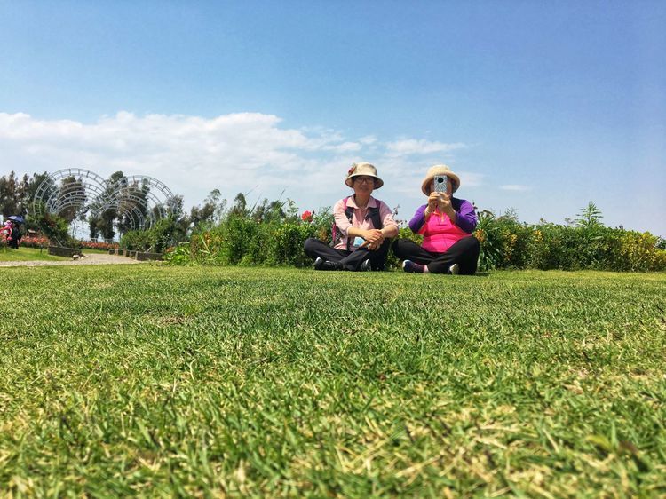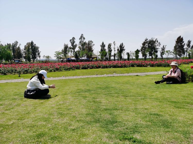 水车踩累了,我们就坐在草坪上,聊天,休憩。