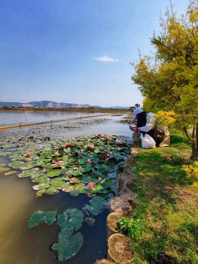 景区内的旅游观光车把我们送到了荷塘。于是我们就沿着荷塘观赏拍摄。