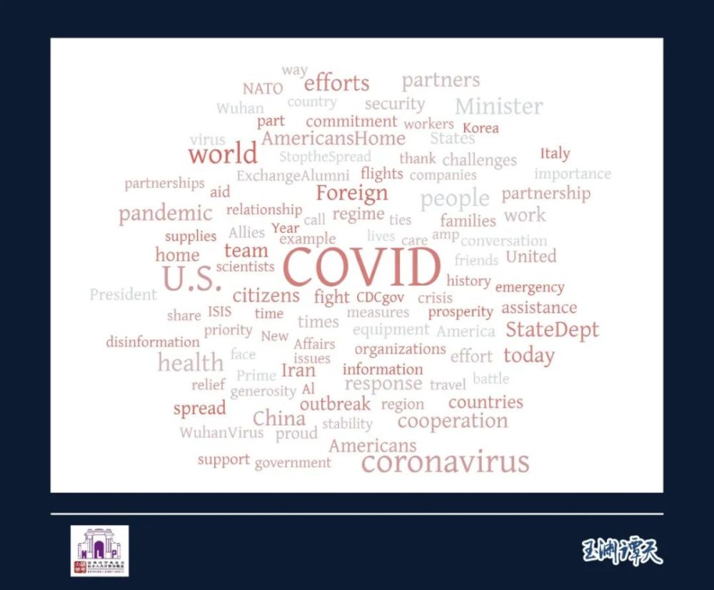 谭主跟清华大学自然语言处理与社会人文计算实验室一起,计算出了蓬佩奥疫情期间所有社交媒体推文的文本分析数据。