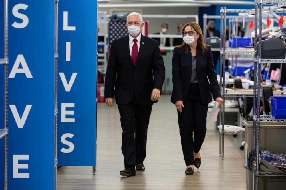报道提到,上周二,彭斯在访问明尼苏达州一家医疗中心时没有戴口罩引起了很大争议。之后,彭斯解释说,因为自己“定期接受新冠病毒检测”。但在30日早上,他的妻子凯伦·彭斯却告诉媒体,他并不知道那家医疗中心有一项要求佩戴口罩的强制性规定。