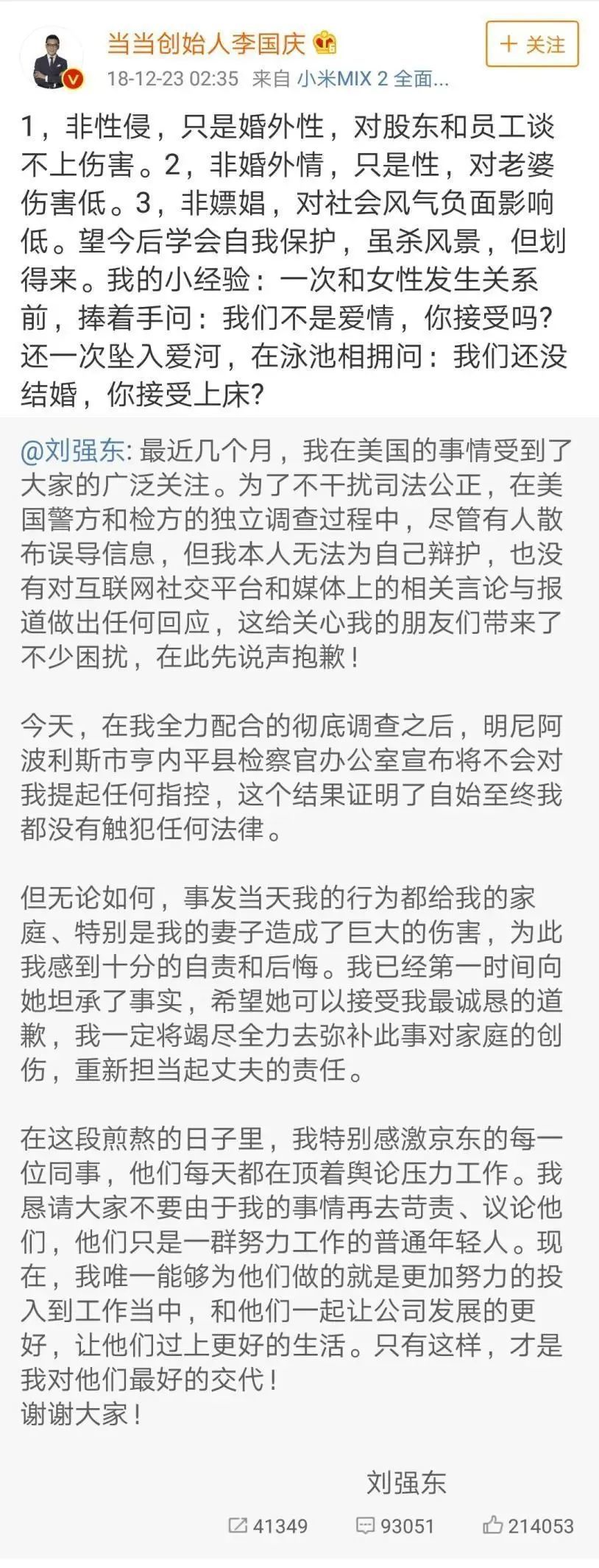 2018年刘强东事件后李国庆便发微博力挺刘强东,被网友痛骂。