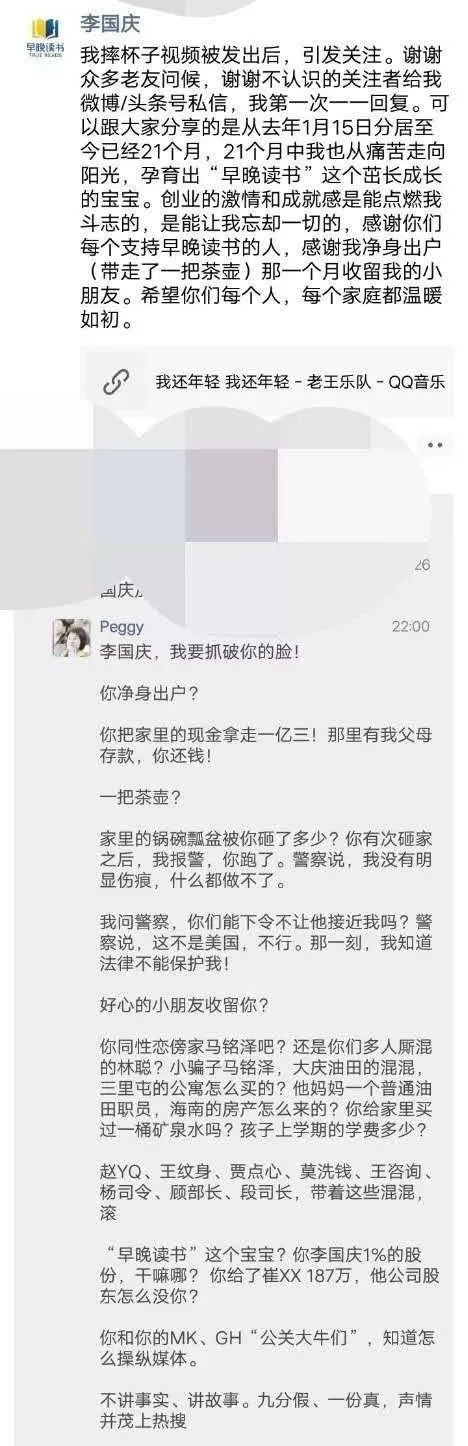 先是李国庆发了个朋友圈,然后俞渝在下面评论手撕李国庆。