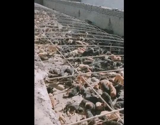 要是下雨天的话,这些大棚就会被盖上一层塑料,能够给狗狗们遮挡一点雨雪,生活条件真是令人堪忧,有一人员有限,狗狗吃喝拉撒都在同一个地方。