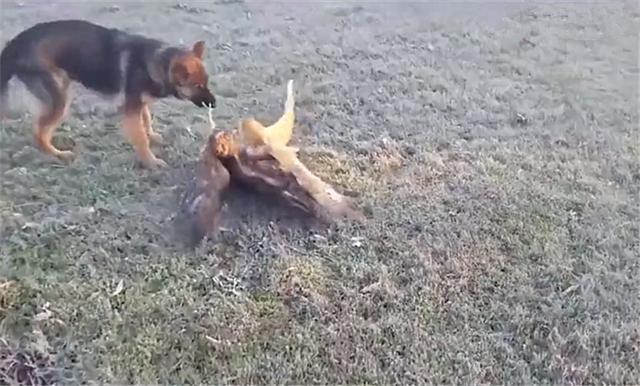 狗狗听到动静赶紧过去查看,它看到雕枭在那里吃着鸽子,它瞬间明白了什么。但是雕枭就是头铁,看到狗狗发现,硬表示不服,主动找狗狗打了起来。