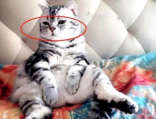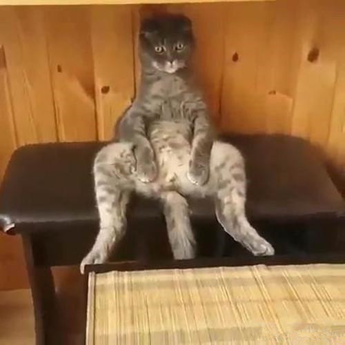 而这只猫咪的坐姿更是滑稽,一副大佬的模样,还有这眼神也真是让人不敢直视啊。