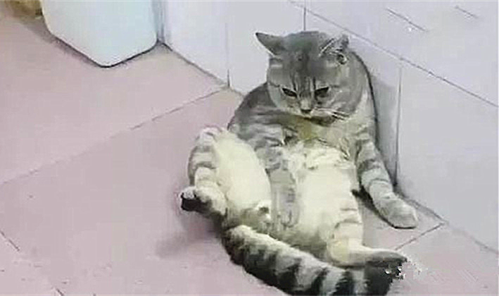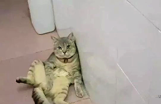 只见猫咪一脸绝望地依靠在墙上,整个都无力地瘫倒在地,还时不时用爪子去找自己的重点部位,真是又好笑又让人心疼。并且猫主子还用质问的眼神盯着铲屎官,直击心灵的那种。