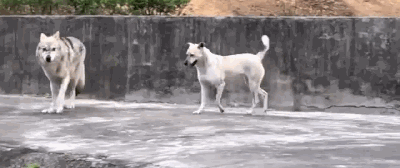 可是这只狼好像是乐在其中,每天受欺负也要跟在狗狗身边。