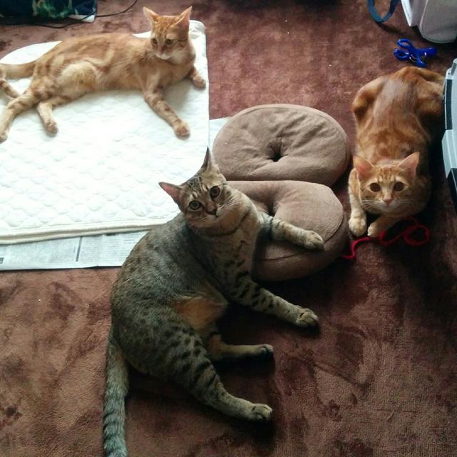 而Tsumire的两只橘猫哥哥,体型跟猫妈妈差不多,真的不知道Tsumire为什么会与众不同!