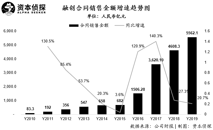 2010年融创成功登陆香港联交所主板市场,不过当时融创的行业排名还在40位之外。