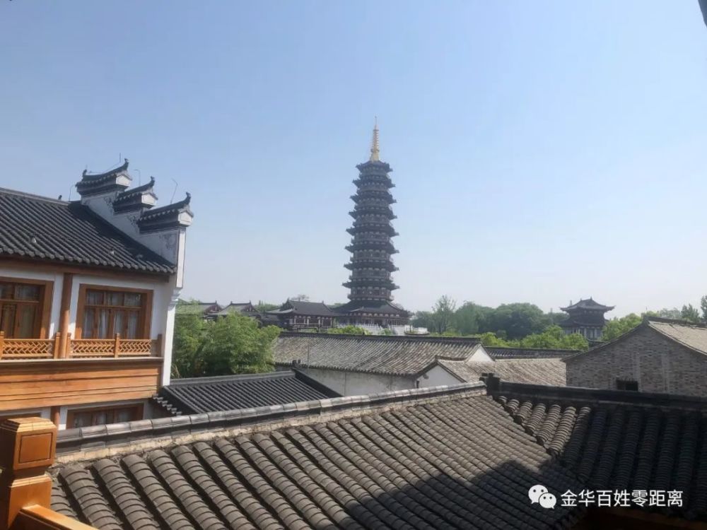 古子城自带吸引游客的魅力,古城内八咏楼、太平天国侍王府等金华代表性景点都受到游客的青睐。燕方归民宿是古子城里一个闹中取静的地方,整体呈现苏州园林式的风格,一花一草一木都经过精心打理。在民宿的三楼走廊,还有一个视野极佳的观景台,可以观赏到不远处的万佛塔。