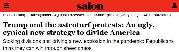 △《美国沙龙网络杂志》发表文章 特朗普和水军抗议:分裂美国的丑陋,愤世嫉俗的新战略
