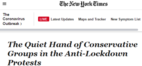 △《纽约时报》发布文章“反对限制令抗议活动中的保守派沉默之手”