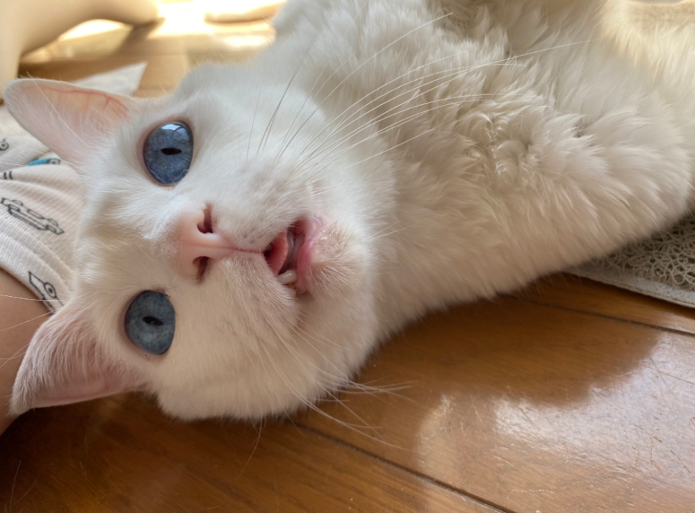 要不是铲屎官摸舌头,猫咪怕是都不知道自己的舌头在外边吧。