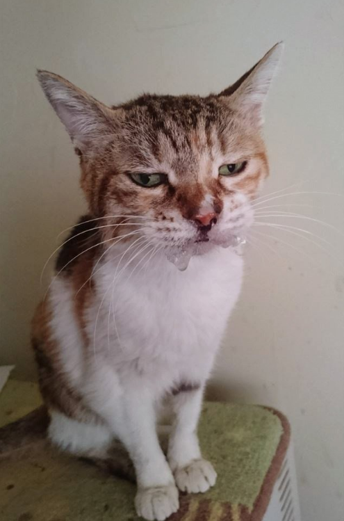 猫咪都不喜欢吃药,这只猫咪被铲屎官灌药后,满脸都写着不高兴。