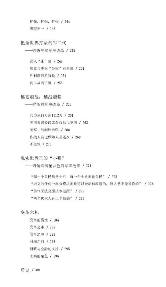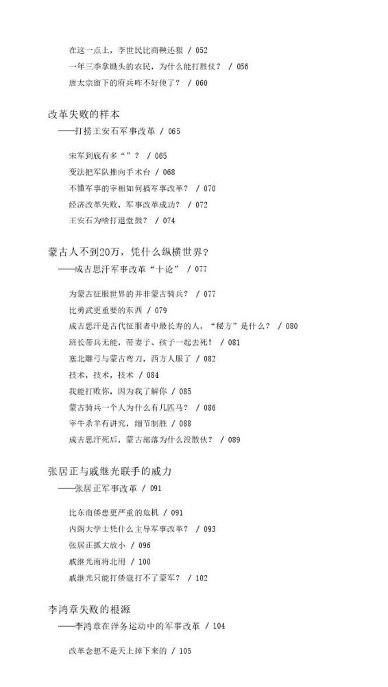 《兵道》的主要内容是古今中外21次重大军事改革的回顾与反思,全书约20万字,目录如下: