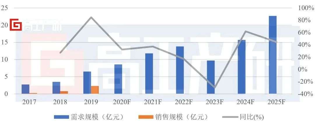 高工产研数据显示,2019年中国膜电极市场规模约为2.28亿元,国产化占有率仅为30%,而在2025年,市场规模有望达到23亿元。